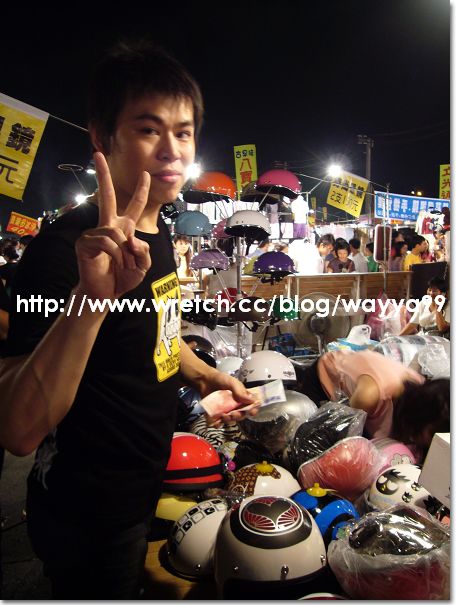 這天我們在大東夜市逛著逛著就看到了這攤販售安全帽的攤販.